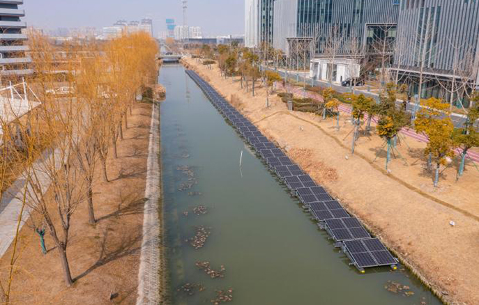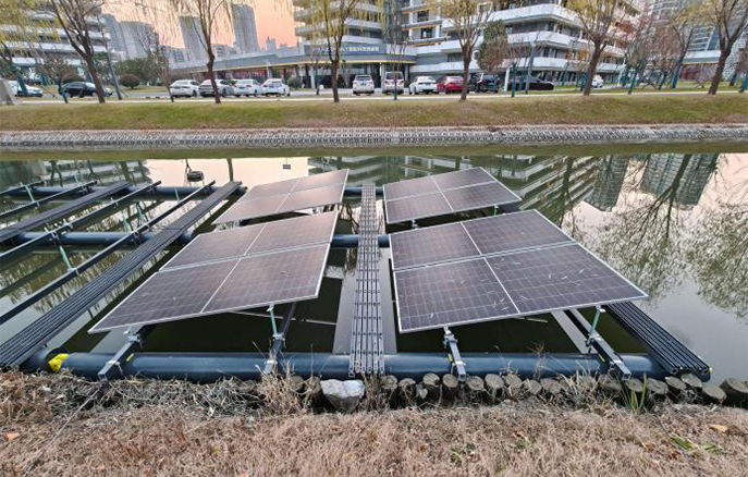 鹽城西伏河防眩光漂浮式光伏電站采用了先進的漂浮式光伏系統(tǒng)設(shè)計,其核心在于精密的錨固系統(tǒng),該系統(tǒng)如同水下根系,有效抵御風(fēng)浪沖擊,確保光伏陣列的穩(wěn)固性。這一技術(shù)突破不僅釋放了水域空間的巨大能源潛能,更標(biāo)志著“向水要電”新時代的開啟。